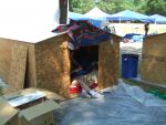 front of baba's hut and chair area